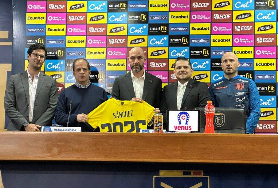 Francisco Egas, presidente de la FEF comenzó la rueda de prensa dandole la bienvenida a Sánchez:”Sobran palabras para presentar a nuestro técnico y su trayectoria. El alto nivel de capacitación entre FC Barcelona y la academia Aspire. Él puso en el mapa futbolero al seleccionando de Catar”.
