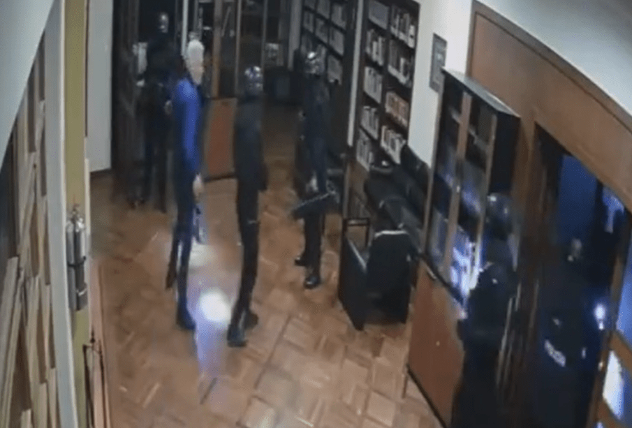 - Durante el video, se aprecia como policías ecuatorianos apuntan con sus armas al jefe de la misión de México en Ecuador, Roberto Canseco Martinez, mientras realizaba labores en la biblioteca del edificio diplomático.