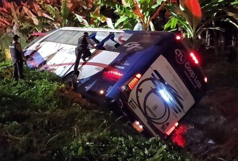 - A la 01:56, un bus de transporte interprovincial perdió pista y se volcó, dejando 4 fallecidos y 22 heridos, así lo confirmó el Sistema Integrado de Seguridad ECU 911.